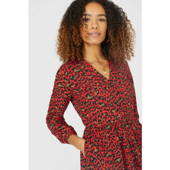 Animal Print Button Through Midi Dress