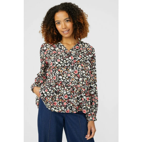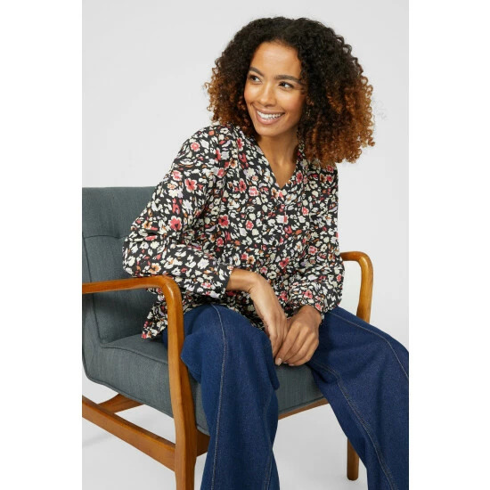 Animal Print Button Through Top from Maine. Stand-out in statement styles and opt for this animal print top for women. Boasting long comfortable sleeves, a modest cut neckline and a tailored cut finish for the perfect fit. Made from 100% Viscose. Wash at 30. Model wears Size 10.