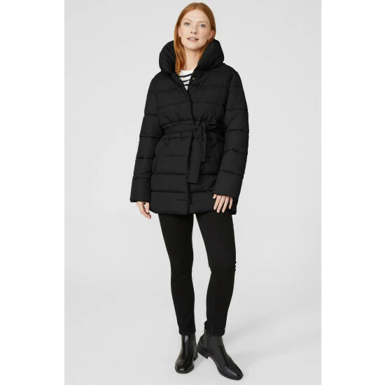 Pillow Collar Coat from Maine. Enhance your outerwear attire with statement, womenswear designs made from luxe fabrics and discover this must-have women’s pillow collar coat. Boasting long padded sleeves, a pillow-like collar neckline, a self-tie belt, side pockets and a tailored cut finish for the optimal body fit. Made from 100% Polyamide. Wash at 30. Model wears a Size 10.