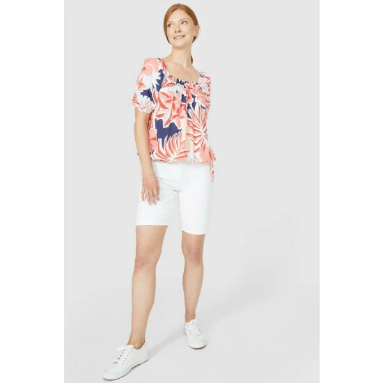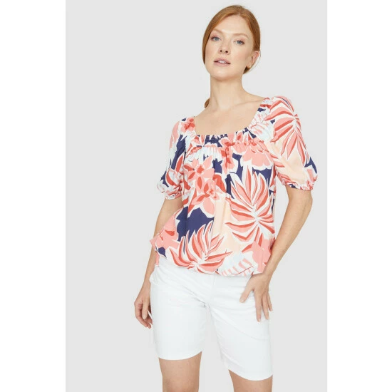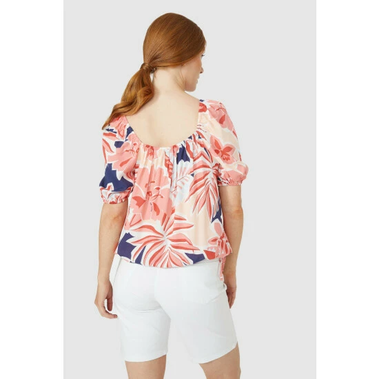 Big Leaves Tie Hem Square Neck Smock Top