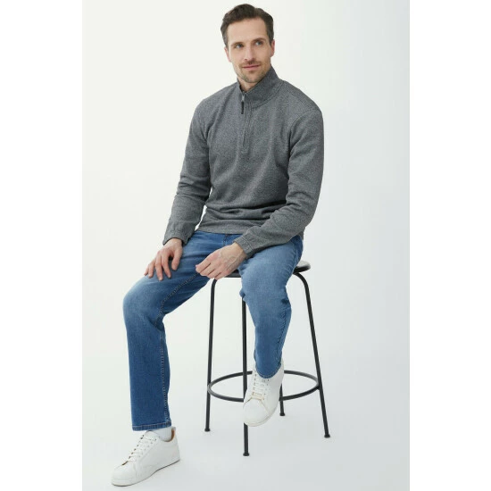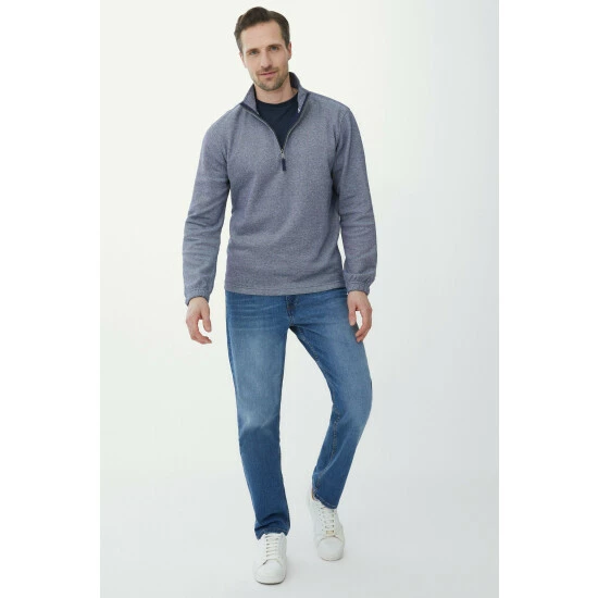 Birdseye texture half zip sweatshirt from Maine. Ideal for covering-up on chilly days, this sweatshirt has been designed from a textured fabric, a handy half zip and cuffed sleeves. You’ll want to wear this style every day.