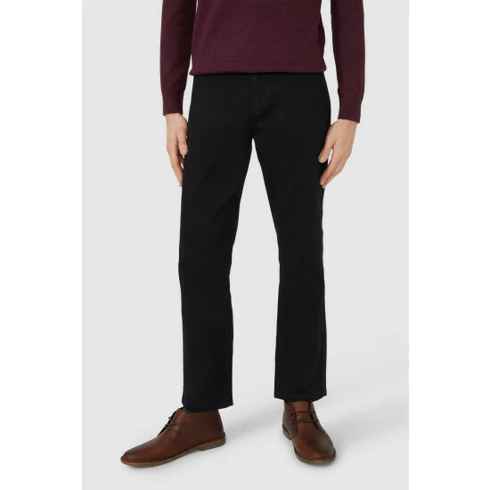 Black twill straight jeans from Maine. A more sleek approach to a style hero, these jeans were made with lower water consumption from a resistant denim weave in a black wash, without any rips or whiskering, for an understated look. So simple you can wear them with anything and make this pair uniquely yours.