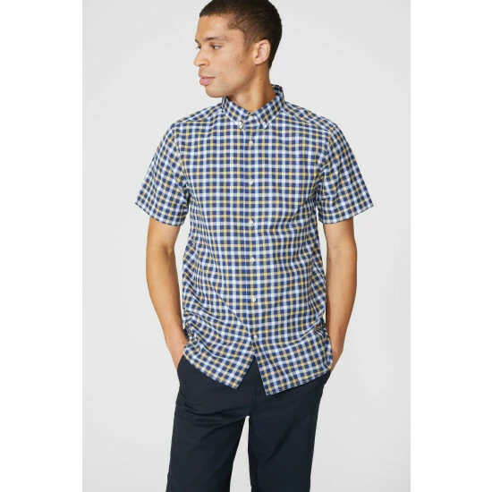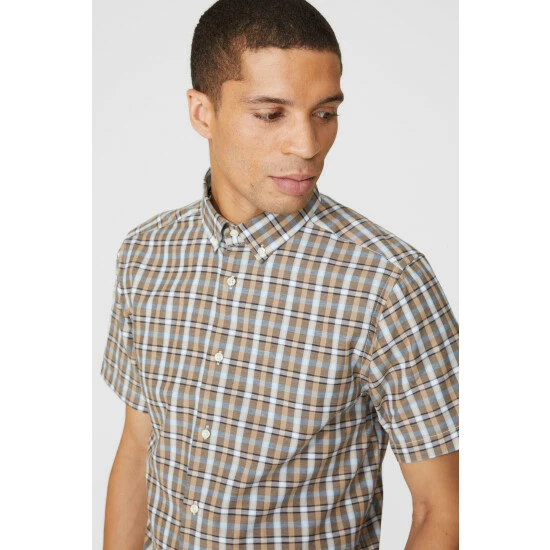 Bold Check Shirt from Maine. Enhance your menswear style with smart clothing made from super-soft, quality fabrics and opt for this sophisticated check print shirt today. Boasting short-cut sleeves, a smart collar neckline, front button detailing and an all-over bold check shirt print. Match with tailored trousers and smart footwear. Made from 100% Cotton. Wash at 40. Model wears Size M.