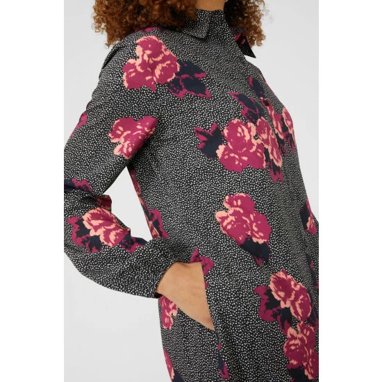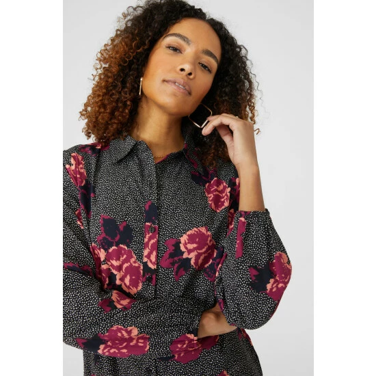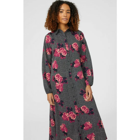 Bold Flower Printed Midi Shirt Dress from Maine. Elevate your dress style this season and discover this contemporary women’s midi dress. Boasting long comfortable sleeves, a smart collar neckline, front button detailing, side pockets and a beautifully bold floral print finish. Style with ankle boots and accessorise with your favourite jewellery. Made from 100% Polyester. Wash at 40. Model wears a Size 10.