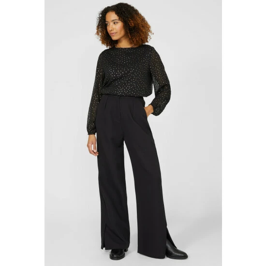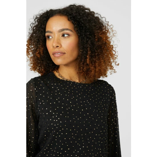 Chiffon Dobby Spot Metallic Blouse from Maine. Refined in style and made from premium fabrics, look to this beautiful women’s dobby spot blouse. Boasting long soft sleeves, a comfortable neckline, spot print detailing, a top back button and a beautifully tailored cut finish. Made from 100% Polyester. Wash at 30. Model wears a Size 10.