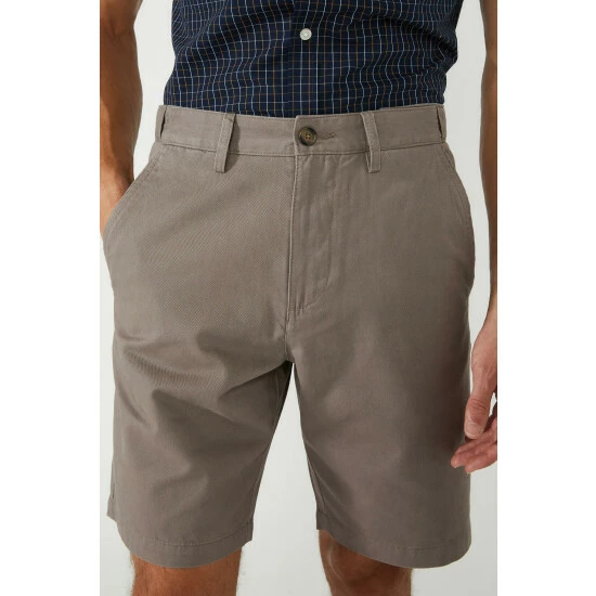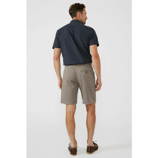 Chino Short from Maine. Smart in aesthetic and crafted from premium fabrics, discover these must-have men’s chino shorts. Forever a style favourite, these Taupe chino shorts feature discreet front and back pockets, a front button with secure zipper and a tailored cut finish for the perfect fit. Made from 100% Cotton. Wash at 30. Model wears a Size M.
