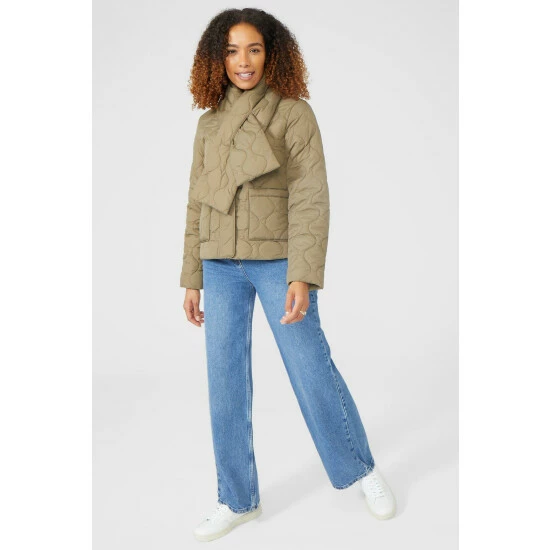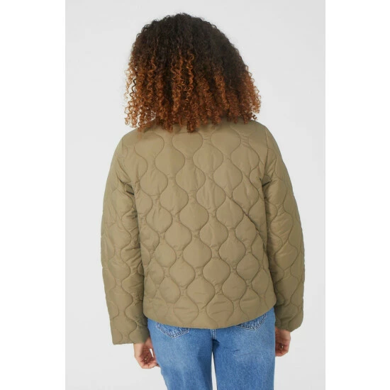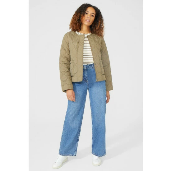 Collarless Quilted Jacket from Maine. Elevate your outerwear style with statement womenswear designs and opt for this collarless quilted jacket. The perfect inner and outer layer piece for seasons ahead, this jacket boasts long comfortable sleeves, a collarless neckline, front pockets, a secure zip-up front, popper buttons and a tailored cut finish. Made from 100% Polyamide. Wash at 30. Model wears a Size 10.