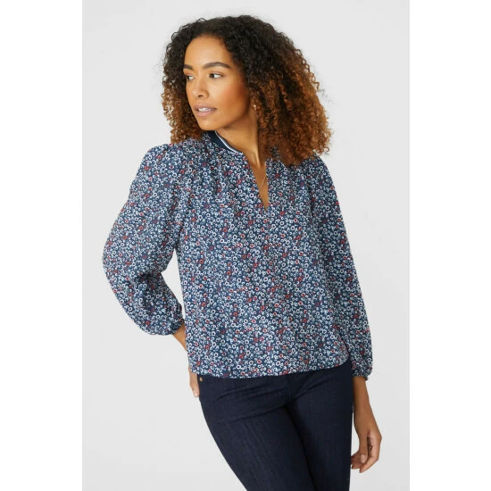 Contrast Cuff Detail Floral Print Blouse from Maine. Elegant in silhouette and crafted from the softest lightweight fabrics, select this beautiful women’s blouse. Boasting long comfortable sleeves with elasticated cuffs, a modest V neckline, a delicate floral print aesthetic and a tailored cut finish for the optimal fit. Crafted from 100% Polyester. Wash at 30. Model wears a Size 10.