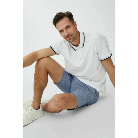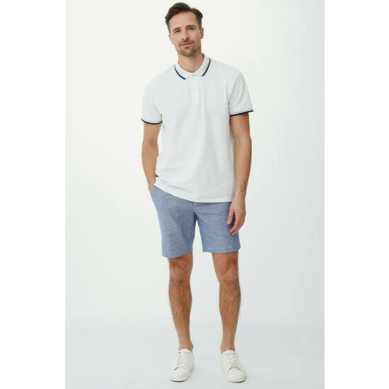 Chino shorts from Maine. Spun from a multi-coloured yarn for an interesting finish, these weather-friendly shorts feature belt loops, side pockets and welt pockets on the back to hold all your essentials.
