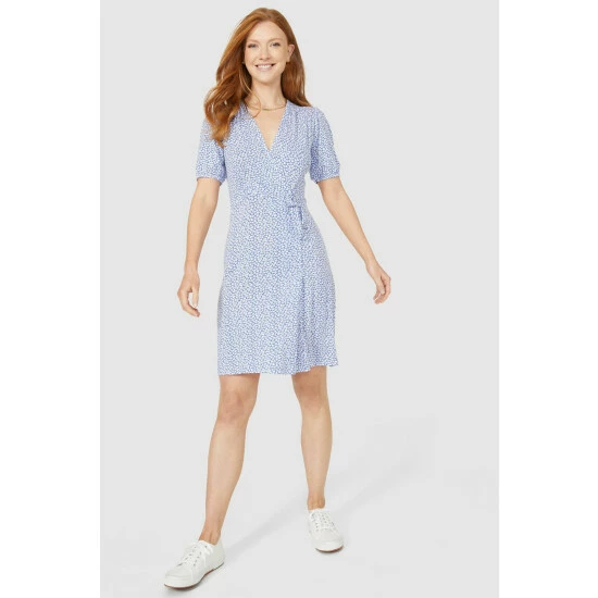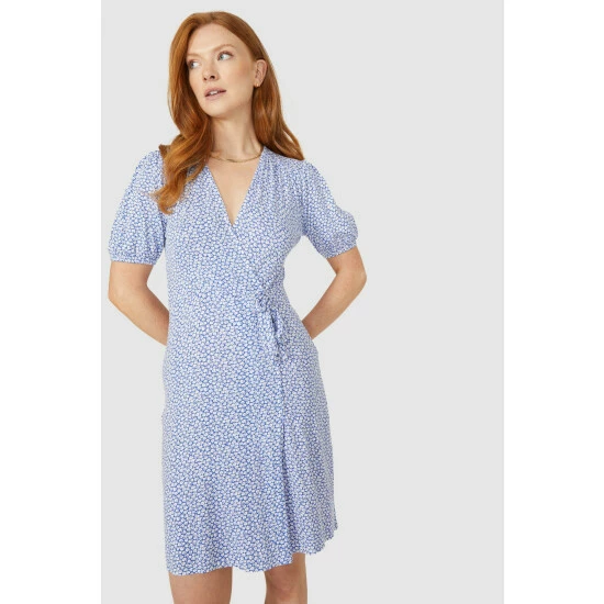 Ditsy Print Mock Wrap Jersey Dress