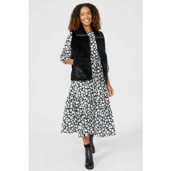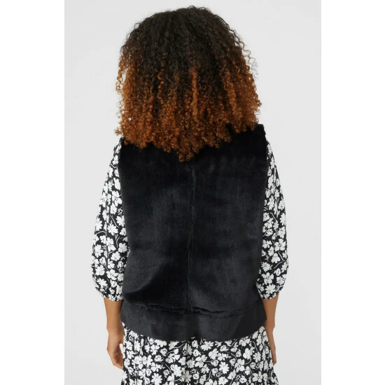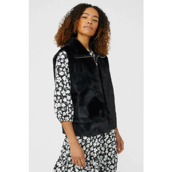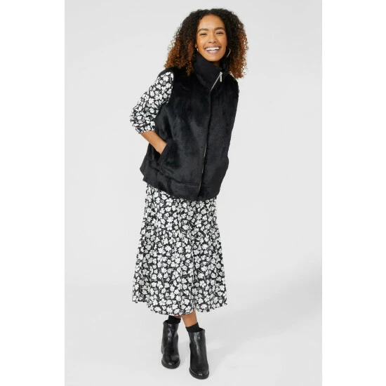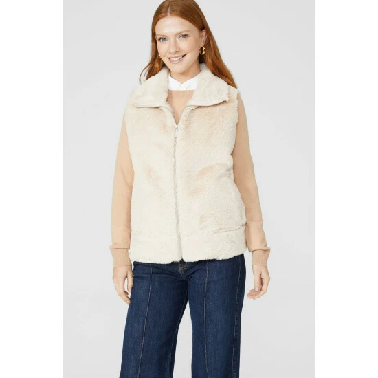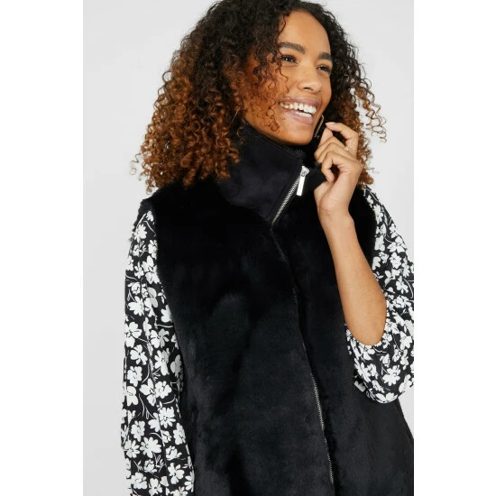 Collar Faux Fur Sheepskin Gilet from Maine. Opt for beautifully chic womenswear styles this season and discover this gorgeous faux fur sheepskin gilet. Boasting sleeveless arms, a super-soft collar neckline, a zip-up front for maximum warmth, side pockets and a tailored cut finish for the optimal fit. Crafted from 100% Polyamide. Wash at 30. Model wears a Size 10.