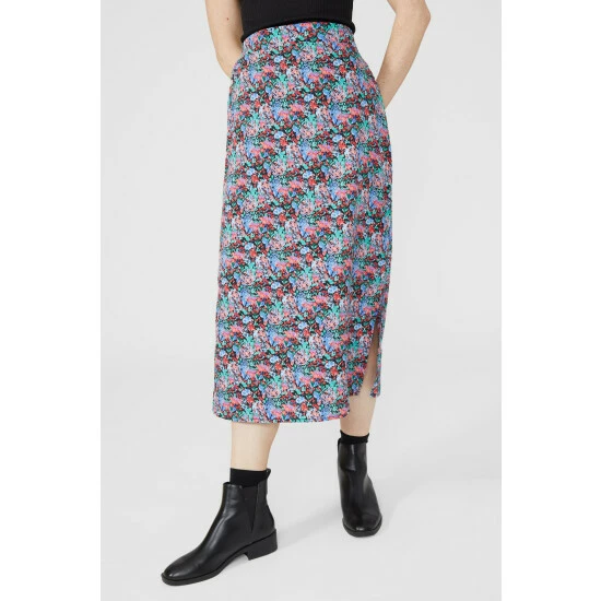 Floral Print A Line Midi Skirt from Maine. Figure-flattering and chic in style, look to this beautiful women’s midi skirt today. Boasting a comfortable high waist cut, a subtle side split, floral print detailing and a tailored cut finish for the optimal fit. Made from 100% Polyester. Wash at 40. Model wears a Size 10.
