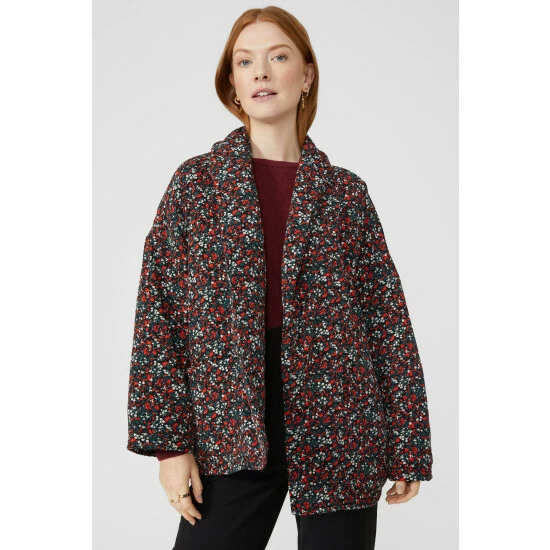 Floral Printed Padded Jacket from Maine. Transform your outerwear attire with feminine styles crafted from super-soft fabrics and select this cosy women’s jacket. Featuring long padded sleeves, a cosy cut neckline, front pocket detailing and a floral print aesthetic. Crafted from 100% Cotton. Wash at 40. Model wears a Size 10.