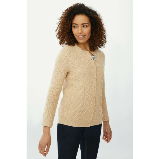 Heart cable cardigan from Maine. You’ll have to look twice to catch all the playful details on this adorable cardigan, just one look and maybe you’ll miss the hearts on the cable-knit pattern or the textured ribbed back. Other colours also available.