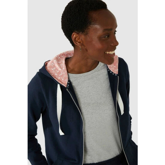 Hooded quilt pocket zip-thru sweat top from Maine. Featuring a pretty, patterned hood interior for a fresh look, this easy-to-wear hooded sweat top is perfect for adding to your casual collection. Designed in a soft and comfortable cotton fabric, it features a zip-up front, side pockets and contrast drawstrings on the hood. Other colours also available.