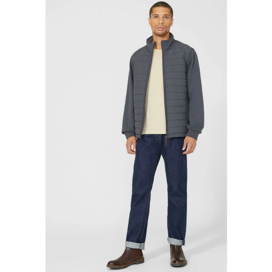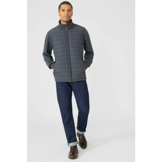 Jersey And Quilt Hybrid Zip Thru Jacket from Maine. Opt for easy-to-wear, lightweight jackets this season with this comfortable men’s zip jacket. Boasting long, relaxed-cut sleeves with elasticated cuffs, a high collar neckline, a zip-up front, side pocket detailing and a smart quilt jacket print finish. Made from 100% Nylon. Wash at 30. Model wears a Size M.