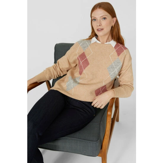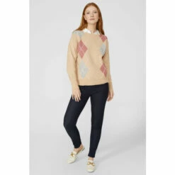 Large Argyle Crew Neck Jumper from Maine. Transform your smart wear attire with easy-to-wear styles made from comfortable, luxe fabrics and opt for this sophisticated women’s crew neck jumper. Boating long fitted sleeves with stretch cuffs, comfortable argyle crew neck detailing and a tailored cut finish for the perfect body fit. Made from 66% Acrylic, 32% Nylon, 2% Elastane. Wash at 30. Model wears a Size 10.