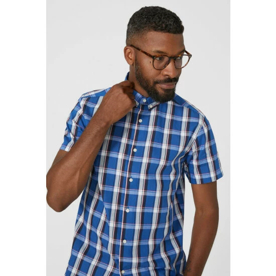 Large Royal Check Shirt from Maine. Easy-to-wear and versatile in style, opt for this practical men’s check shirt this season. Boasting short and fitted sleeves, a smart collar neckline with buttons, front button detailing, and a striking check print pattern finish for a stand-out aesthetic. Match with smart trousers and formal footwear. Crafted from 100% Cotton. Wash at 40. Model wears Size M.