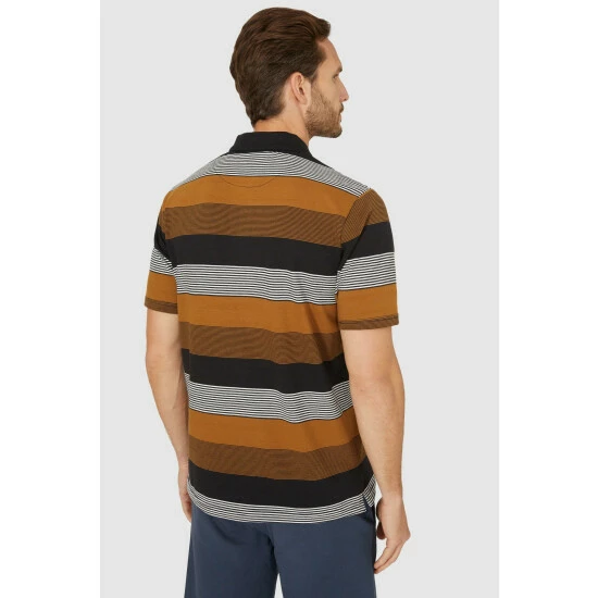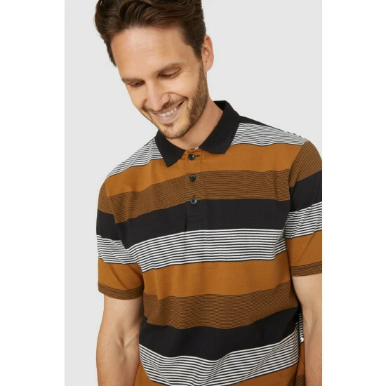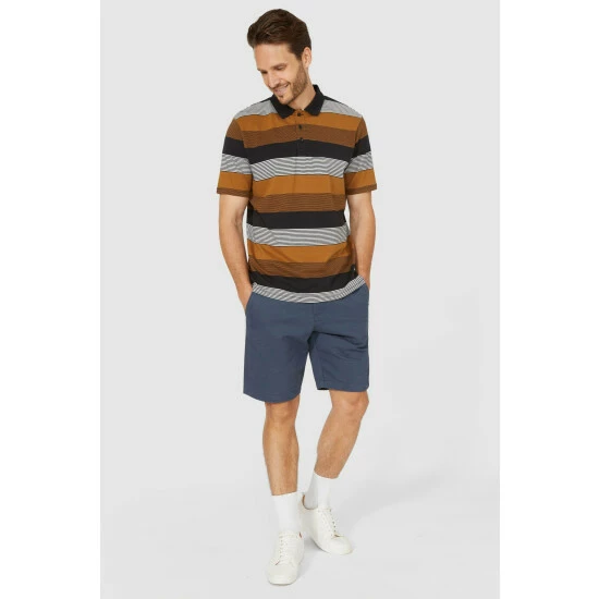 Large Varied Stripe Polo from Maine. Enhance your casualwear attire and update your personal style with this practical yet fashionable men’s polo top. Crafted from super soft fabrics and boasting a refined collared neckline, front buttons, short sleeves, and a tailored cut finish. Finish off the look perfectly and coordinate with cargo pants and trainers.