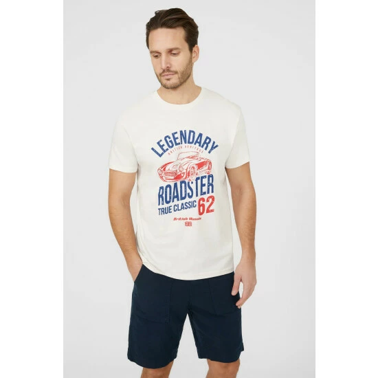 Legendary Roadster Printed Tee. Elevate your style this season and opt for this trending printed tee for men. Crafted from super-soft fabrics, this style boasts short-cut sleeves, a comfortable neckline, a two-tone printed logo, and a tailored cut finish.