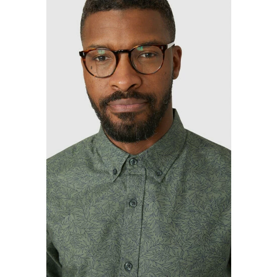 Long Sleeve Leaf Print Oxford Shirt