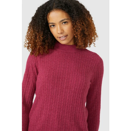 Cable Stitch Turtle Neck Ultrasoft Jumper from Maine. Layer up this season in luxe knitwear styles crafted from super-soft fabrics and choose this beautiful women’s jumper. Featuring long soft sleeves with stretch cuffs, a cosy cut neckline, chic cable stitch detailing and a tailored cut finish for the perfect warm fit. Made from 100% Acrylic. Wash at 30. Model wears a Size 10.