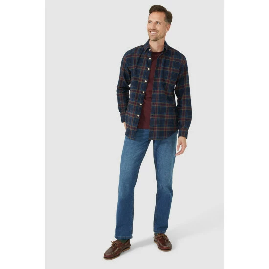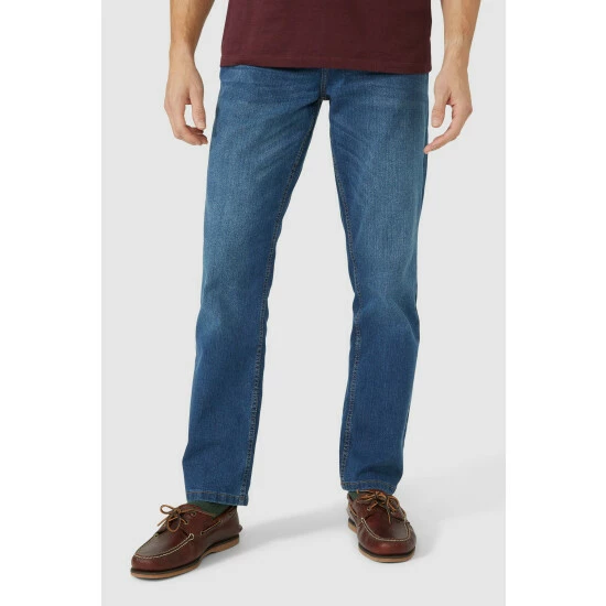 Mid wash straight jeans from Maine. A classic that will never go out of style, the reliable straight-leg jean is at the heart of any core wardrobe. Wear them with anything from a formal blazer to a simple jumper depending on what the occasion calls for. These jeans were made with lower water consumption.