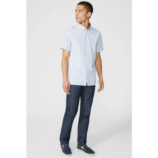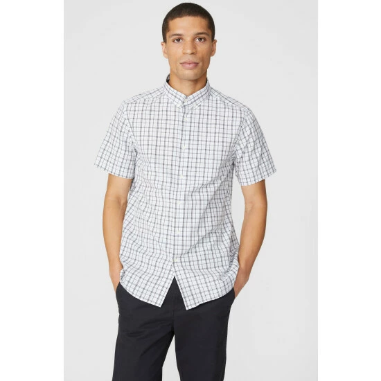 Mini Box Check Shirt from Maine. Update your menswear look with smart and sophisticated styles such as this lightweight men’s mini box check shirt. Boasting short-cut sleeves, a smart collar neckline, front button detailing and an all-over mini box check shirt print finish. Team with denim jeans and your favourite smart footwear. Made from 100% Cotton. Wash at 40. Model wears Size M.