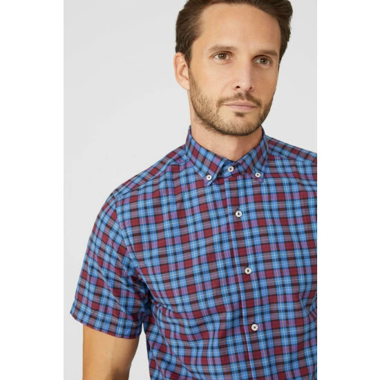 Mini Overcheck Shirt from Maine. Smart in aesthetic and crafted from premium fabrics, transform your wardrobe with this must-have men’s check shirt. Boasting short-cut sleeves, a smart collar neckline, front button detailing and a tailored cut finish for the perfect fit. Made from 60% Cotton, 40% Polyester. Wash at 40. Model wears a Size M.