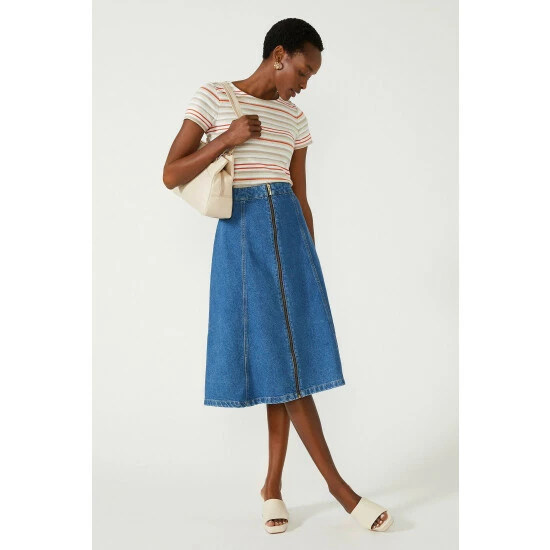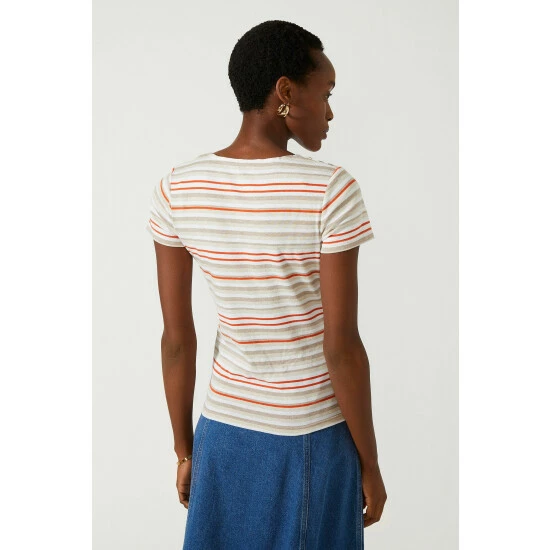 Multi-stripe short-sleeved top from Maine. Featuring round neckline, classic fit and branded button detail on shoulder. Finished with silver-tone button on hem. Style with a flowing midi skirt and strappy sandals for an easy summertime approach.