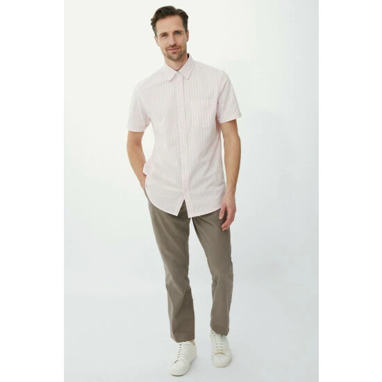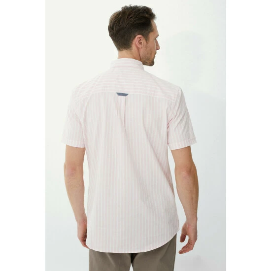 Striped Oxford shirt from Maine. An Oxford shirt is a must-have for every smart-casual wardrobe; made from a textured cotton for an interesting finish, this style has been a timeless classic for almost a century. Re-imagined for the summer season, it features short sleeves and a subtle striped pattern.