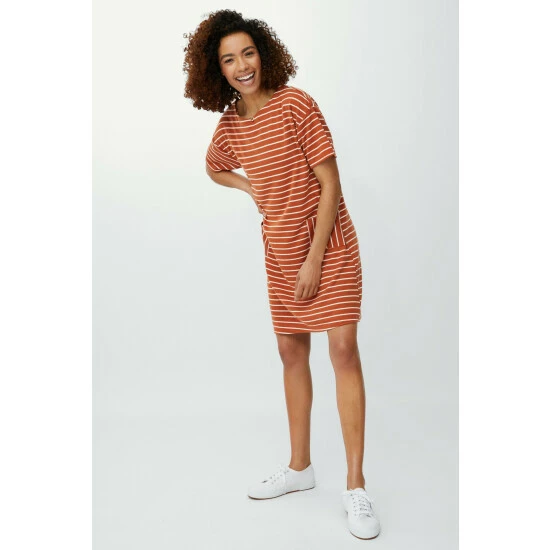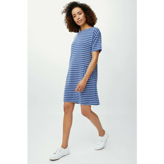 Stripe scoop neck dress with pockets from Maine. Comfortable and stylish, just what your wardrobe needs. Featuring a scoop neck, half sleeves and front pockets. Other colours available.