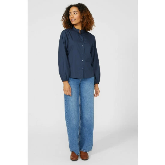 Grandad Collar Shirt With Balloon Sleeves from Maine. Chic in design and crafted from premium fabrics, look to this statement women’s collar shirt. Featuring beautiful balloon sleeves with elasticated cuffs, a comfortable neckline, front button detailing and a tailored cut finish for a smart fit. Made from 100% Cotton. Wash at 30. Model wears Size 10.