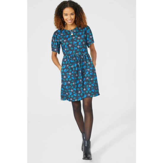 Printed jersey midi dress from Maine. Inject some colour into your wardrobe with this bold floral print. Featuring a crew neck and a flattering angel sleeve this easy yet stylish fit and flare dress is a great addition to this season’s wardrobe. Available in 2 colours. Made from 80% Polyester, 15% Cotton. Wash at 30. Model wears a Size 10.