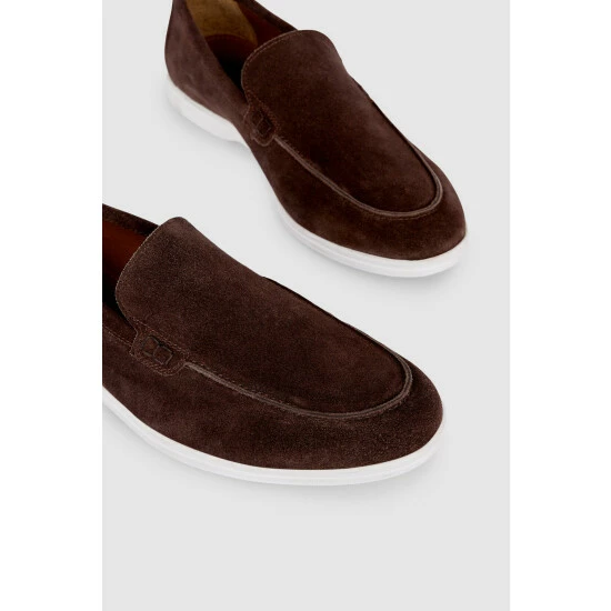 Putney suede loafers from Maine. Slip into style and comfort with these premium suede loafers. In a simple easy-wear design, they feature plain uppers with a contrasting outsole for added interest. Other colours also available.