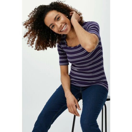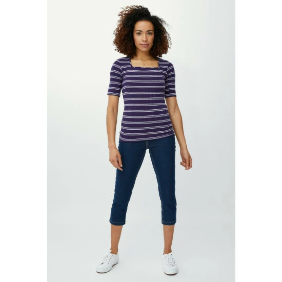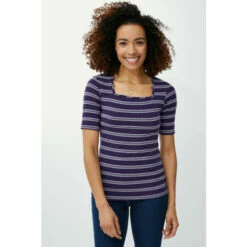 Ribbed stripe square neck T-shirt from Maine. This unconventional tee features a stripe pattern and square neck. Champion comfort and pair it with your favourite jeans and trainers.