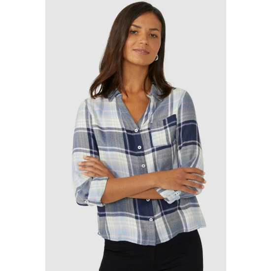 Rolled sleeve check shirt from Maine. With a ‘borrowed from the boyfriend’ style, this shirt will soon become one of your weekend wardrobe heroes. Crafted from brushed flannel in a check pattern, this relaxed-fit style features a soft spread collar, rolled-up sleeves and a chest pocket. Other colours also available.