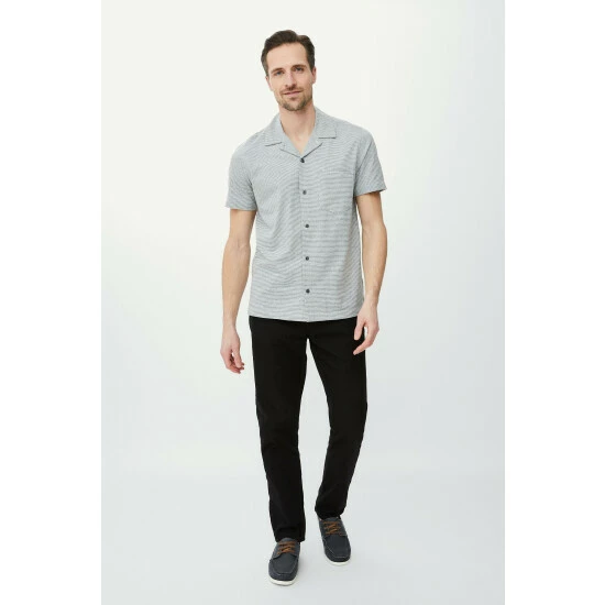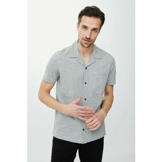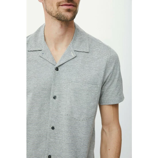 Jersey shirt from Maine. This shirt is effortless summer style at its finest. Made from breathable jersey to keep you cool when the temperature rises, it features an on-trend camp collar, fine striped print and side slits for ease of movement.