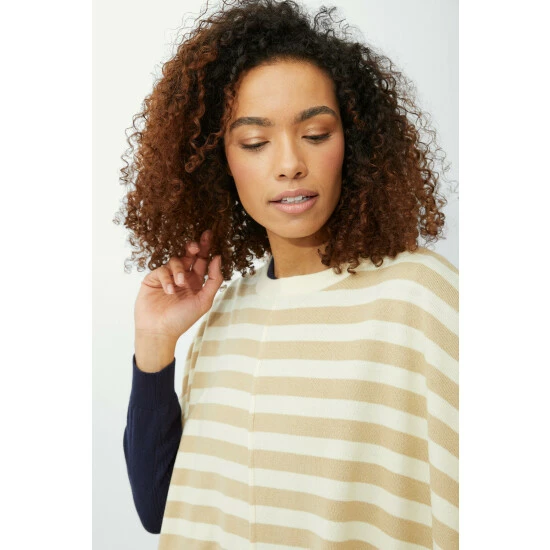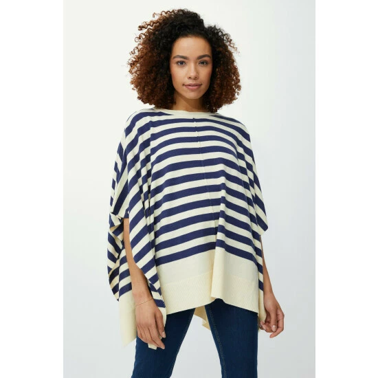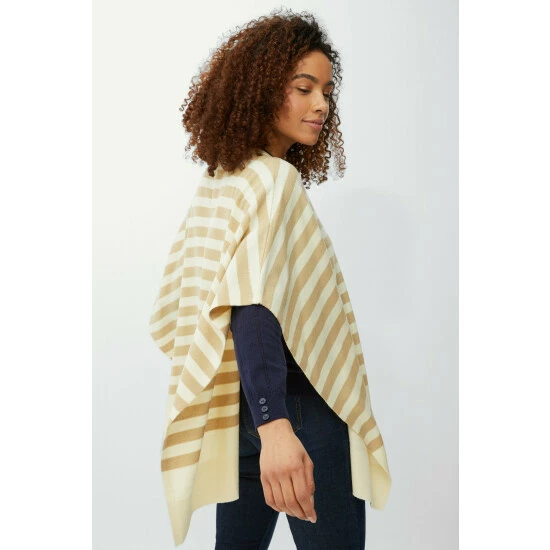 Stripe poncho from Maine. Great for in between weather, this half sleeve poncho is the perfect extra layer to throw on when the temperature dips. This versatile style looks great over practically everything! Other colours also available.