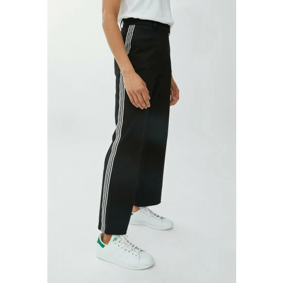 Side stripe smart trousers from Maine. Athleisure has made us all fans of comfortable and easy-wear style. Favouring clean lines and utilitarian details this trend will only get more popular. A hybrid between smart trousers and joggers, this style looks as good with smart blouses as it does with casual tees and trainers.
