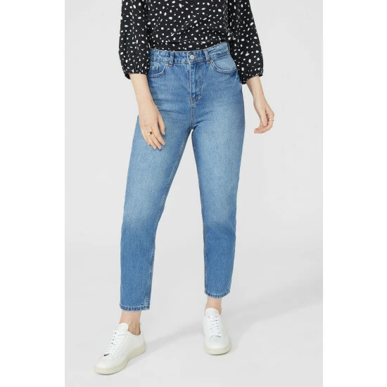 Slim Fit Mom Jean from Maine. Super flattering in aesthetic and easy to style, opt for these statement mom jeans. Boasting a comfortable high waist cut, front and back pocket detailing and a tailored cut finish for the optimal fit. Coordinate with classic trainers, an occasionwear top and accessorise with your favourite jewellery. Made from 100% Cotton. Wash at 30. Model wears a Size 10.