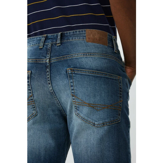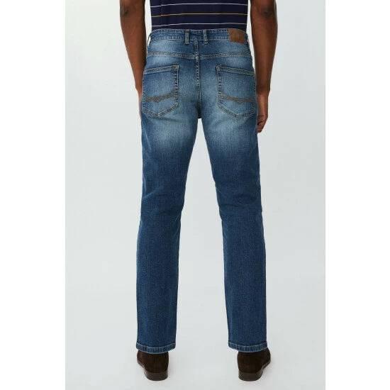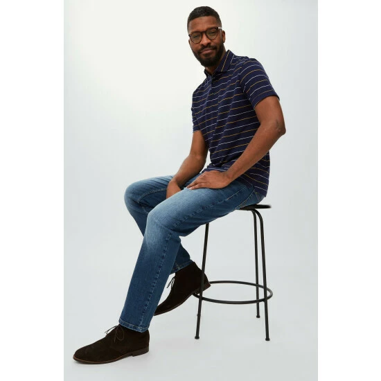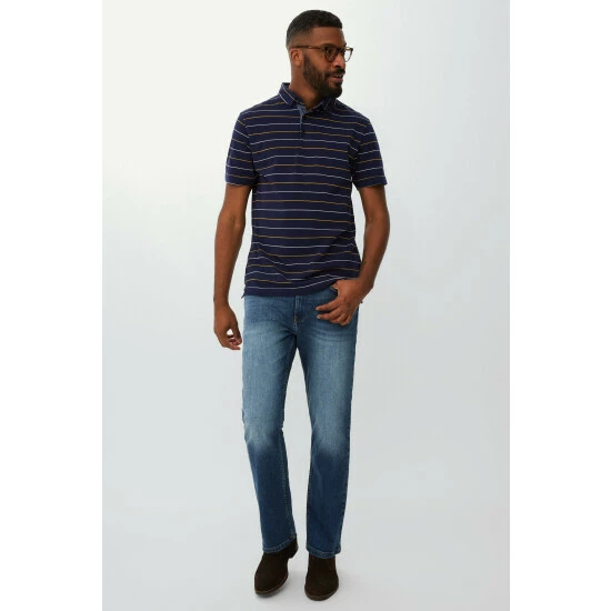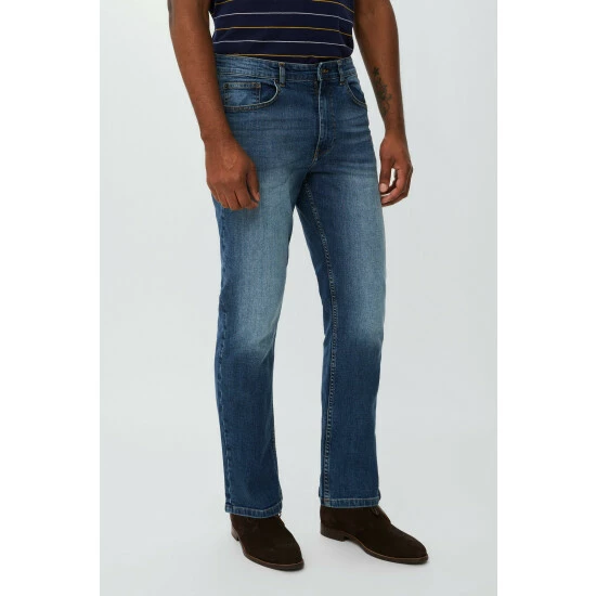 Mid stone wash straight stretch jeans from Maine. A classic that will never go out of style, reliable straight-leg jean is at the heart of any core wardrobe. Wear these jeans with a check shirt and tonal jumper for a relaxed smart-casual look.