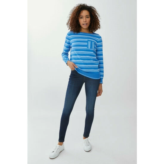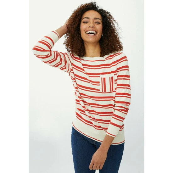 Striped cotton jumper from Maine. Spun from a cotton yarn for a deliciously soft feeling against your skin, this striped jumper is the pop of colour your wardrobe needs this spring. Wear it with jeans and trainers for weekend adventures with the family. Other colours also available.