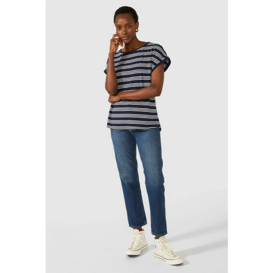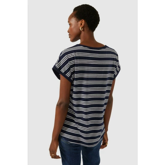 Stripe slash neck top from Maine. For a fresh take on nautical style, look no further than this striped slash-neck top. Designed with grown-on cap sleeves and a relaxed fit, this contemporary style will give an instant update to casual weekend looks. Other colours also available.