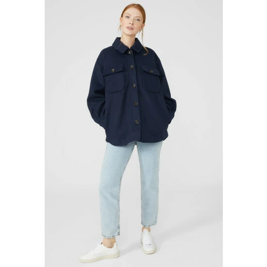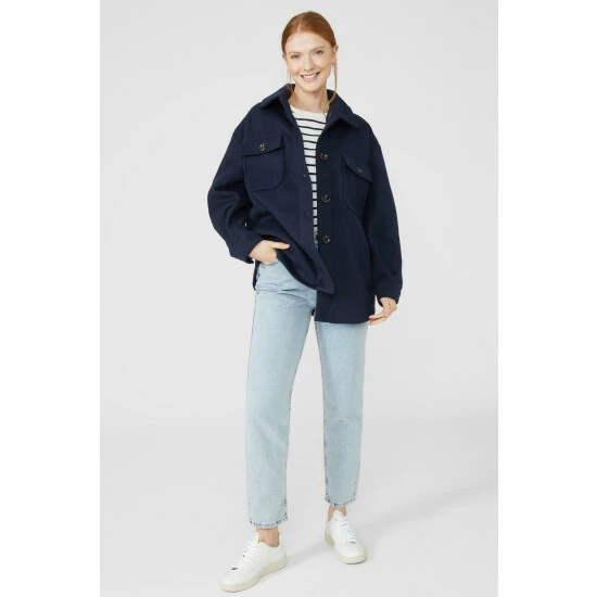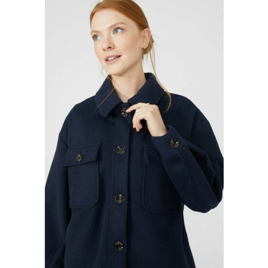 Twill Shacket from Maine. Super-soft in fabric and luxe in texture, transform your outerwear attire with this women’s twill shacket. Boasting long sleeves with horn button cuffs, a chunky yet smart collar neckline, front button detailing with top front pockets and a chic oversized finish for optimal warmth. Crafted from 100% Polyester. Wash at 30. Model wears a Size 10.