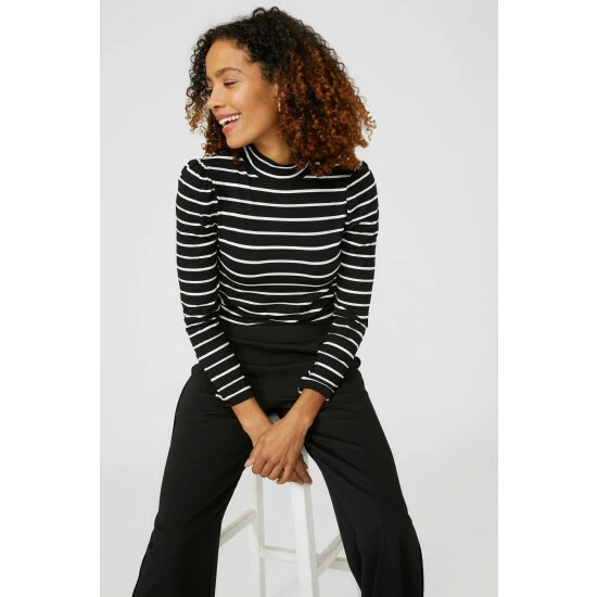 Viscose Stripe Jersey Roll Neck Top from Maine. Effortlessly chic and crafted from premium fabrics, choose this stripe women’s roll neck top. Boasting long soft sleeves, a comfy roll neck design, stripe detailing and a tailored cut finish.