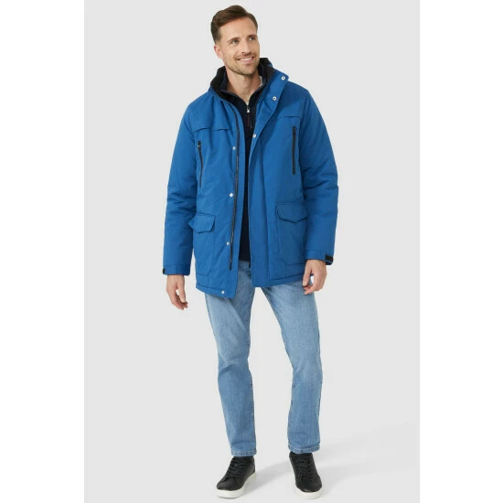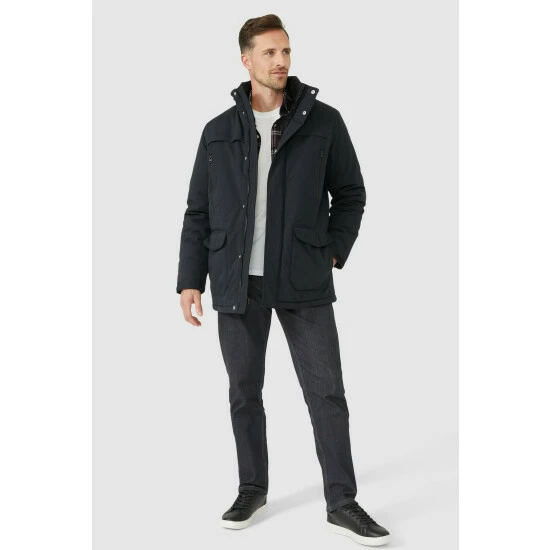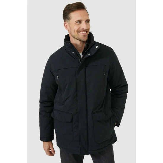 Walking jacket from Maine. Made to last for years to come, this coat is a combination of practical design and classic features without sacrificing on style. Crafted from a waterproof shell fabrication with a handy concealable hood, plenty of exterior and interior pockets to keep your valuables safe and an insulated lining that will help keep you warm and toasty. Other colours also available.
