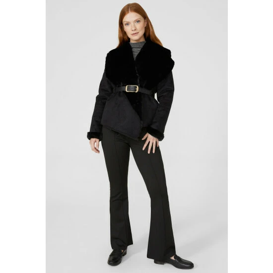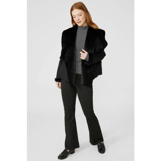 Collar Faux Fur Sheepskin Waterfall Jacket from Maine. Transform your outerwear attire and look to this statement women’s waterfall jacket. Boasting long cosy sleeves, a super-soft collar neckline, and a tailored cut finish for the optimal fit. Made from 100% Polyamide. Wash at 30. Model wears a Size 10.