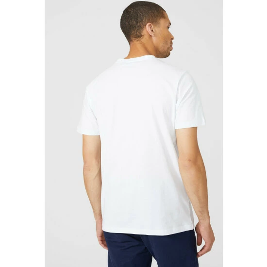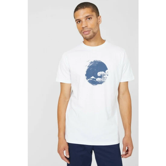 Wave Printed T-shirt from Maine. Super-soft in texture and perfect to style with any outfit, update your menswear attire with this wave printed T-shirt. Featuring short-cut sleeves, a circular neckline, a wave printed T-shirt logo and a tailored cut finish for the optimal fit. Match with smart trousers and team with your favourite lace trainers. Crafted from 100% Cotton. Wash at 30. Model wears Size M.