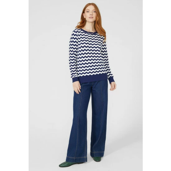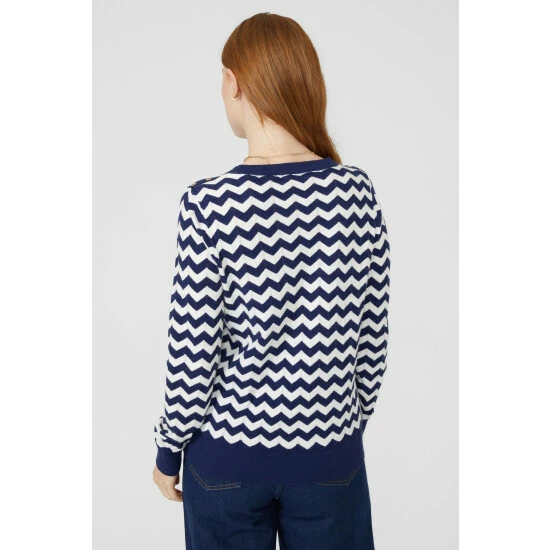 Zig Zag Crew Neck Jumper from Maine. Chic in aesthetic and crafted from the finest soft fabrics, select this must-have women’s crew neck jumper. Boasting long soft sleeves with cuff detailing, shoulder buttons, a comfortable crew neckline, a beautiful zip zag print and a tailored cut finish for the ultimate fit.